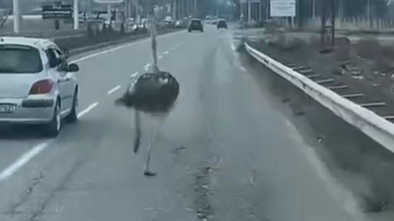 Çiftlikten kaçan deve kuşu, Diyarbakır-Batman karayoluna girdi. Trafikte deve kuşunu gören sürücüler, zor anlar yaşadı. Deve kuşunun trafikte koştuğu anlar cep telefonu kamerasına yansıdı.
