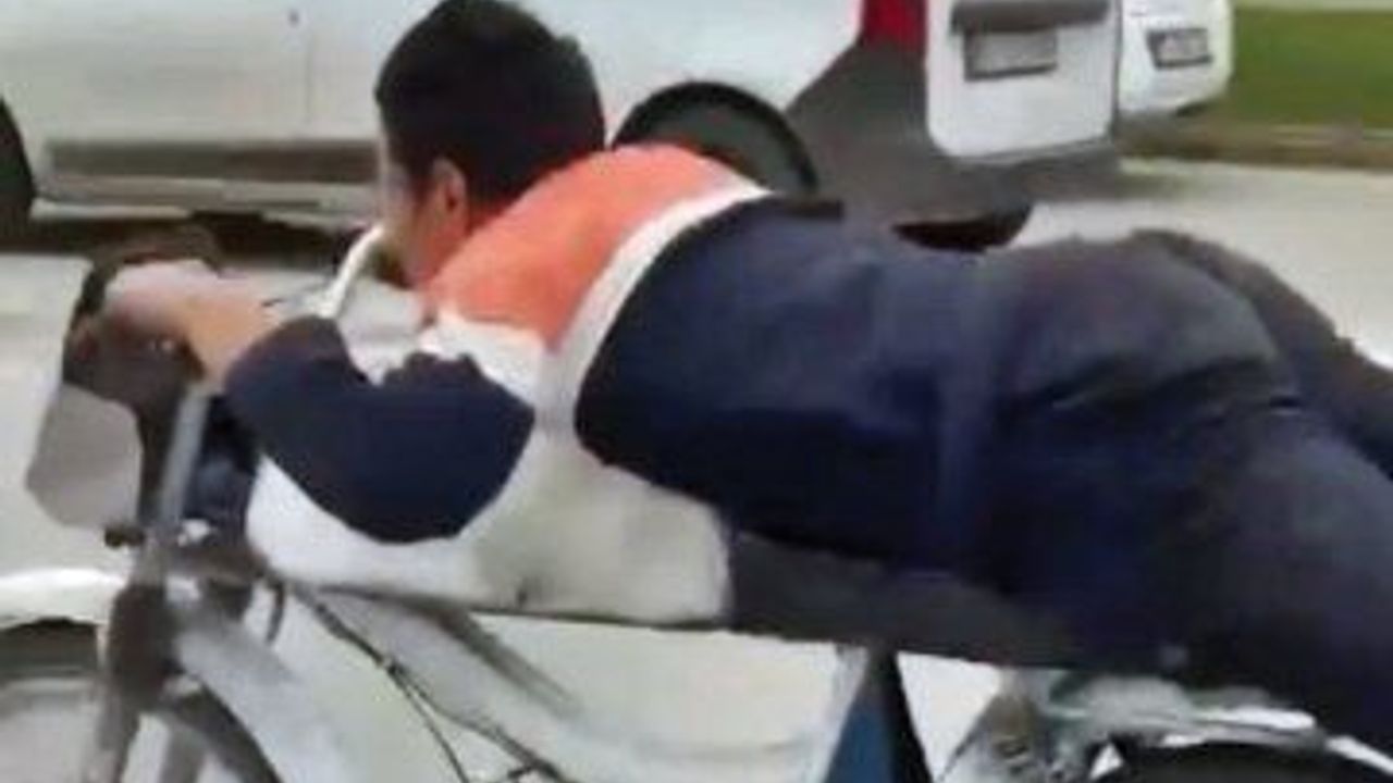 Antalya'da motosikleti yüzüstü yatarak kullanan kasksız sürücü, hem kendi hem de diğer sürücülerin hayatını tehlikeye attı. Diğer sürücüler tarafından cep telefonu kamerasıyla kaydedilip sosyal medyada paylaşılan görüntüler tepki çekti