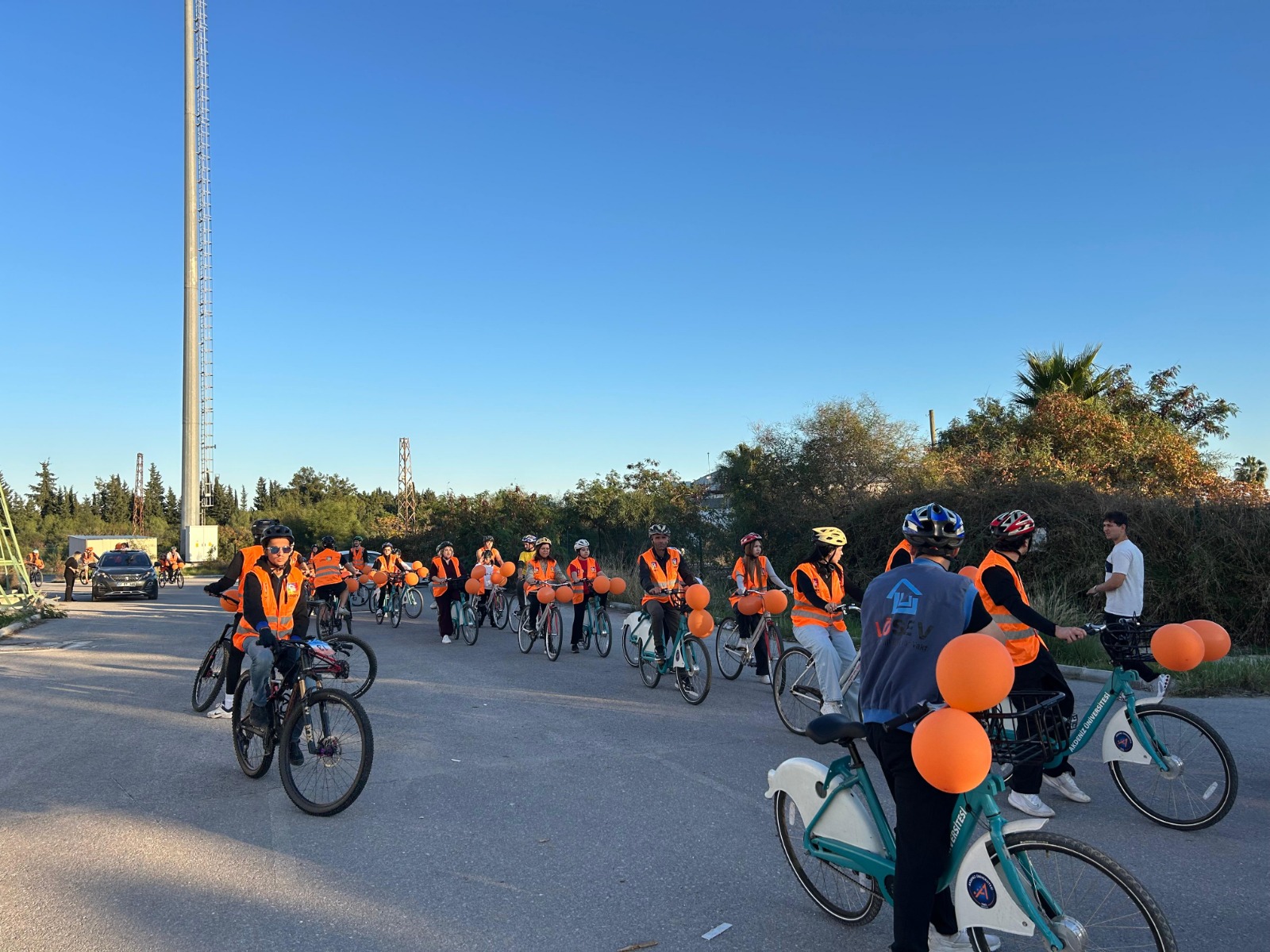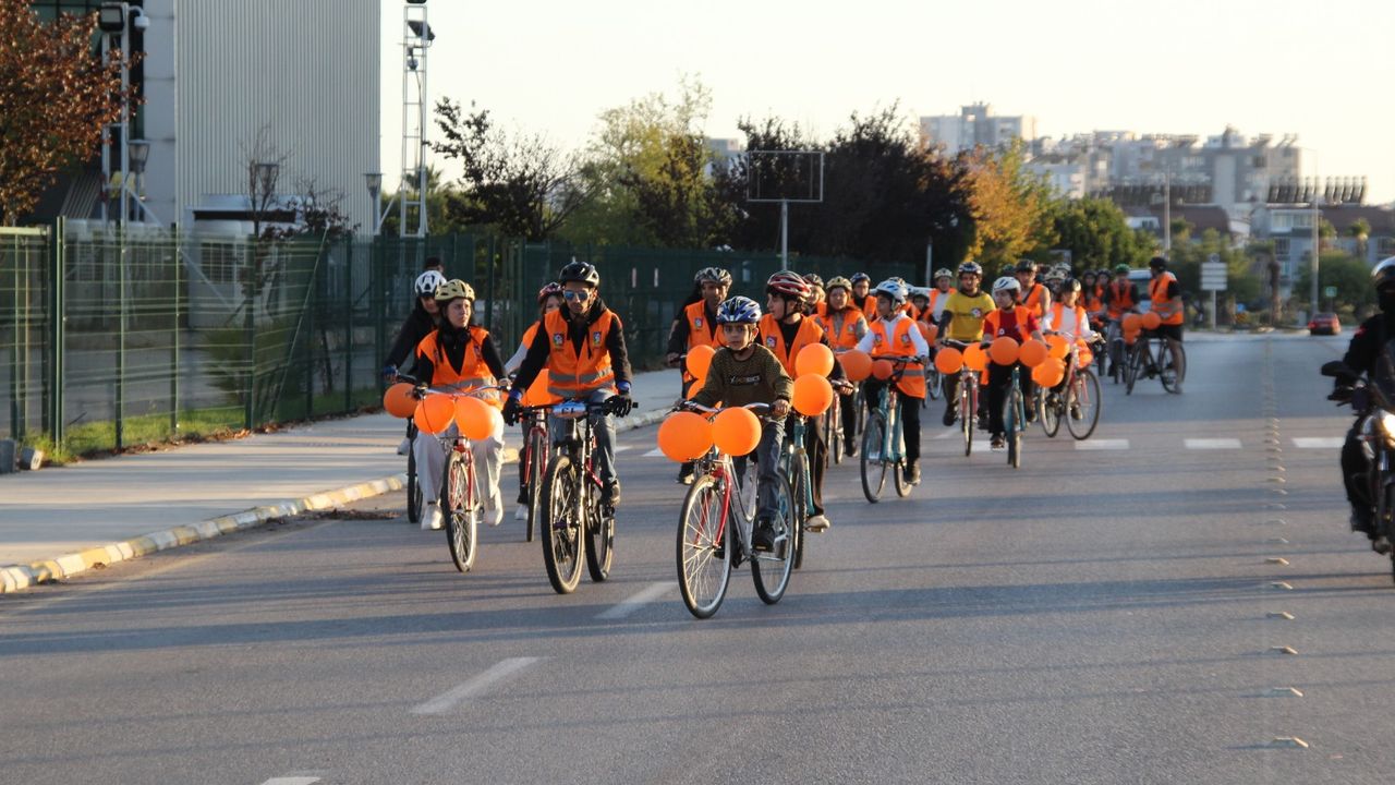 Yaklaşık 80 kişinin katılım sağladığı “Turuncu Pedal” etkinliğinde, öğrenciler ve gönüllüler lösemili çocuklara moral vermek ve farkındalığı artırmak amacıyla kampüs içinde tur attı.