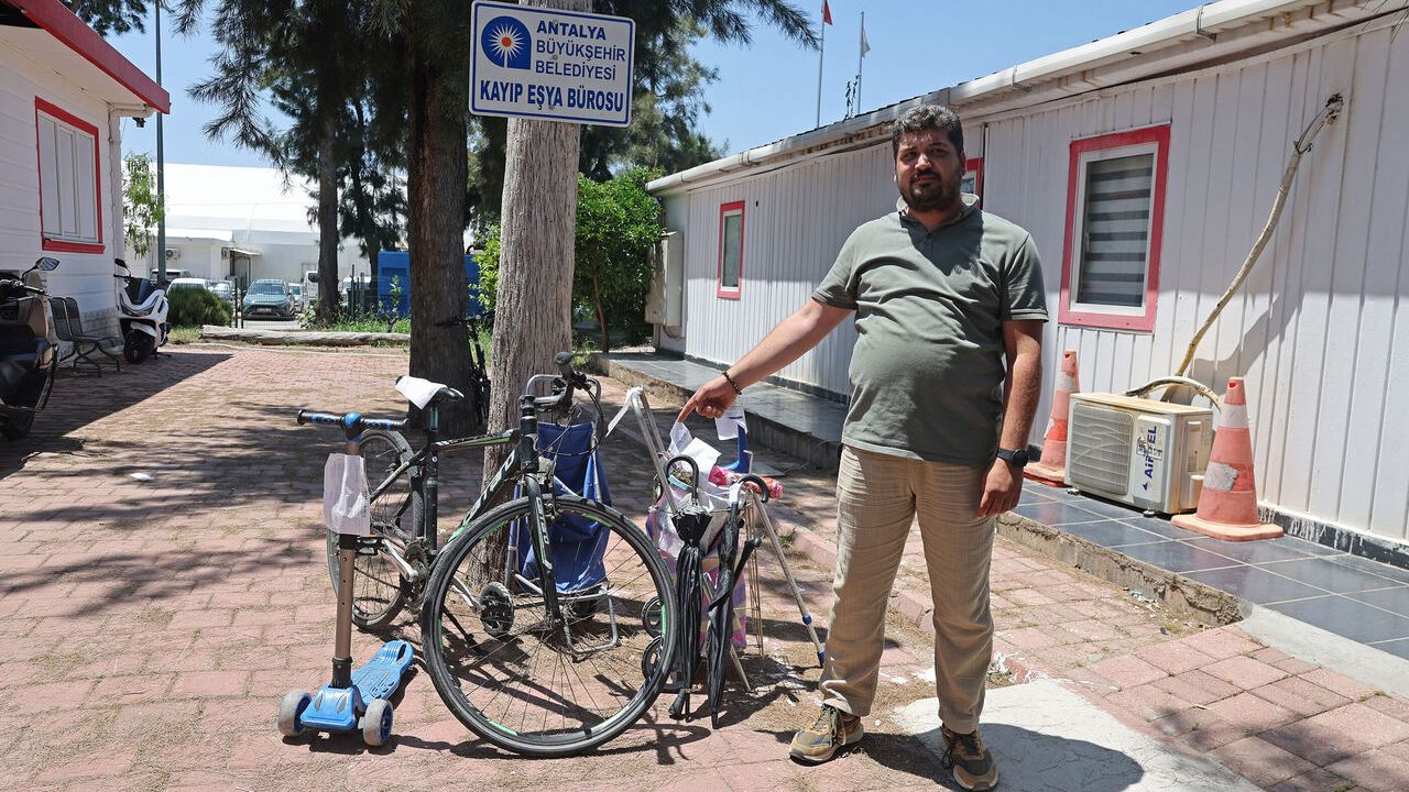 Antalya'da şehir içi toplu taşıma araçlarında yolcuların unuttuğu bisiklet, deniz paleti, scooter, cep telefonu, para, valiz ve bebek arabası gibi onlarca eşya kayıp eşya bürosunda depoda sahiplerini bekliyor