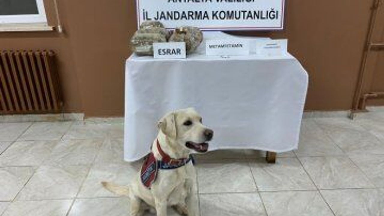 Antalya'da yol kontrol noktasında durdurulan otobüste, narkotik köpeği Elyaf'ın yolcu bavuluna tepki vermesi üzerine yapılan aramada; 6 kilo kubar esrar, 1 adet bong ve 3 gram metamfetamin ele geçirildi. Olayla ilgili 1 kişi gözaltına alındı