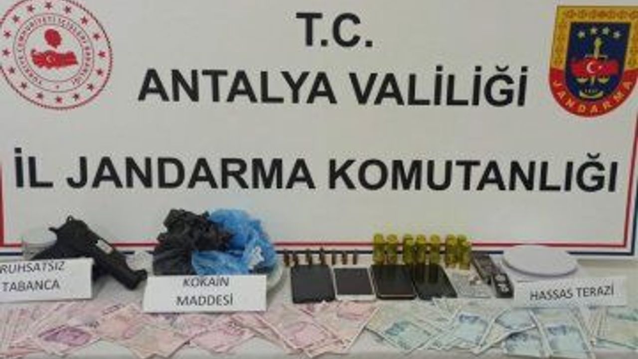 ALANYA İlçe Jandarma Komutanlığı ve Antalya İl Jandarma Komutanlığı KOM Şube Müdürlüğü ekipleri tarafından Alanya ilçesinde 3 ayrı adrese eş zamanlı uyuşturucu ve uyarıcı madde imal ve ticareti suçuna yönelik operasyon gerçekleştirildi. 3 adrese gerçekleştirilen operasyon kapsamında 7 şüphelinin ev, araç ve iş adreslerinde yapılan aramalarda; 400 gram kokain, 2 adet hassas terazi, 1 adet ruhsatsız tabanca, 20 adet tabanca fişeği, 2 adet delil niteliği taşıyan not defteri, suçtan elde edildiği değerlendirilen 200 Euro, 565 ABD Doları, 32 bin 635 Türk Lirası, 6 adet cep telefonu ele geçirildi. Olayla ilgili 7 şüpheli gözaltına alındı. (İHA)