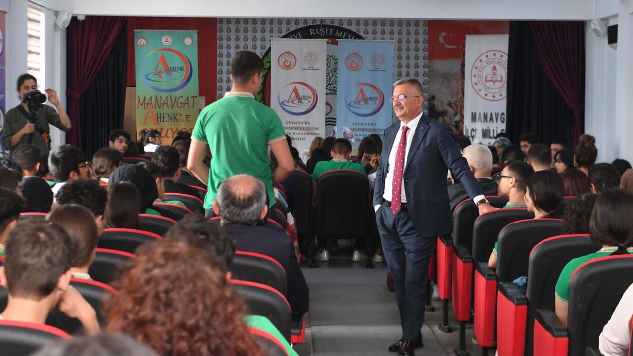 Vali Ersin Yazıcı, AHENK Projesi kapsamında 64’üncü okul ziyaretini Manavgat Rukiye-Raşit Meşhur Mesleki ve Teknik Anadolu Lisesi’ne gerçekleştirdi. Ziyarette öğretmen ve öğrencilerle bir araya gelen Vali Yazıcı’ya Manavgat Kaymakam Vekili Volkan Hülür, Kaymakam Adayları Mintaha Sarıkaya, Emre Akçay, Fuat Sözer, İsmail Yüksek ve İl Milli Eğitim Müdürü Emre Çalışkan eşlik etti.