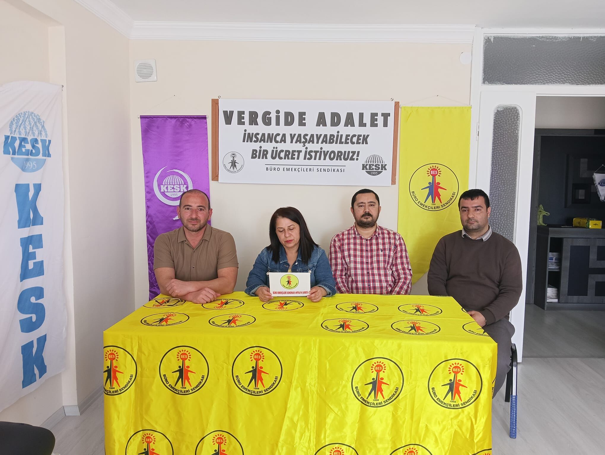 Büro Emekçileri Sendikası Antalya Şubesi, Vergi Haftası kapsamında şube binasında basın toplantısı düzenledi. Şube Başkanı Devrim Mol, mevcut vergi politikalarının dar ve sabit gelirliler üzerinde ağır bir yük oluşturduğunu söyledi. Mol, Anayasa’da yer alan “mali güce göre vergi” ilkesinin uygulanmadığını belirterek, ücretlilerin gelirlerinin kaynağında kesildiğini ancak yüksek gelir gruplarının çeşitli istisna ve teşviklerle avantaj sağladığını ifade etti.