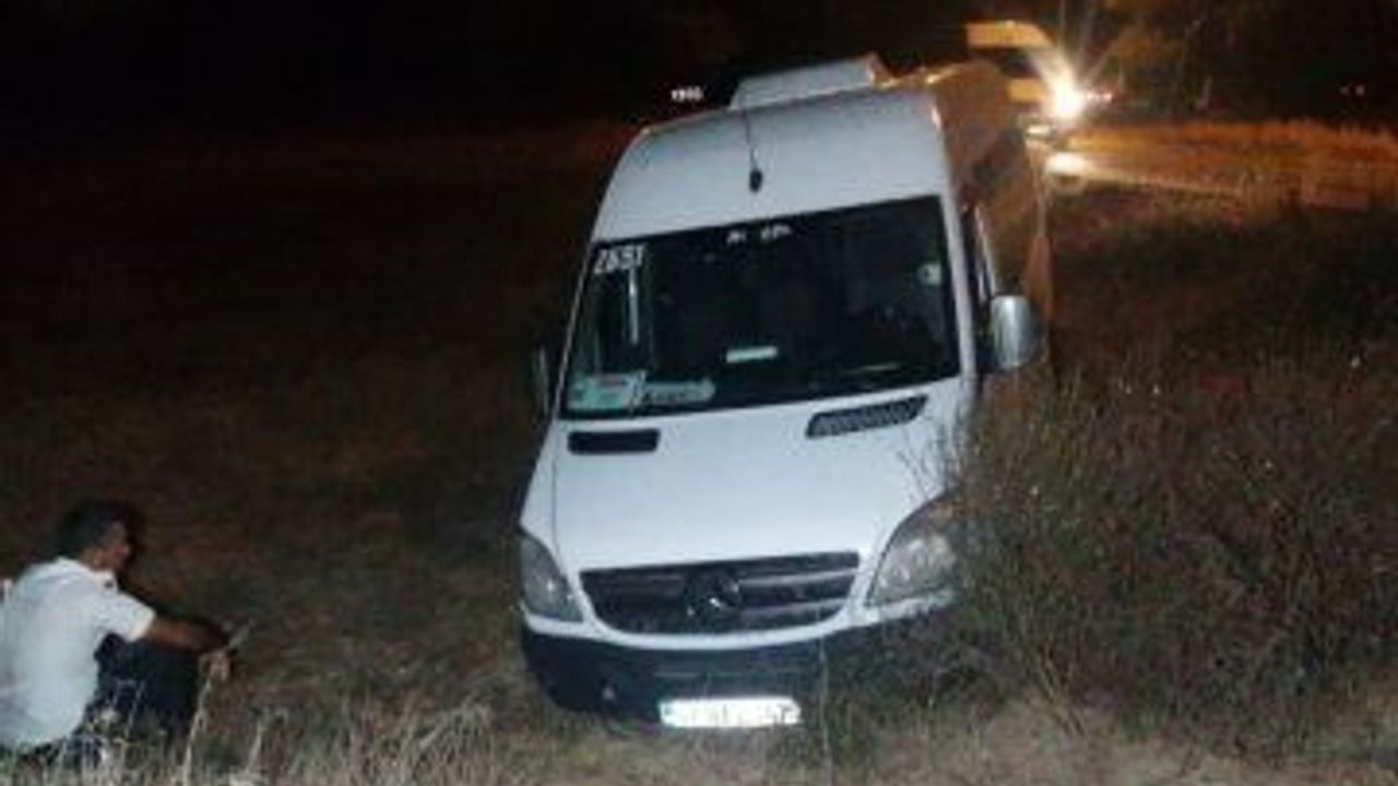 ANTALYA'NIN Manavgat ilçesinde seyir halindeki tur minibüsü, sürücüsünün direksiyon hakimiyetini kaybetmesi sonucu virajı alamayarak şarampole uçtu. Araç sürücüsü ise çaresiz şekilde oturarak aracın kurtarılmasını bekledi.