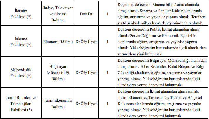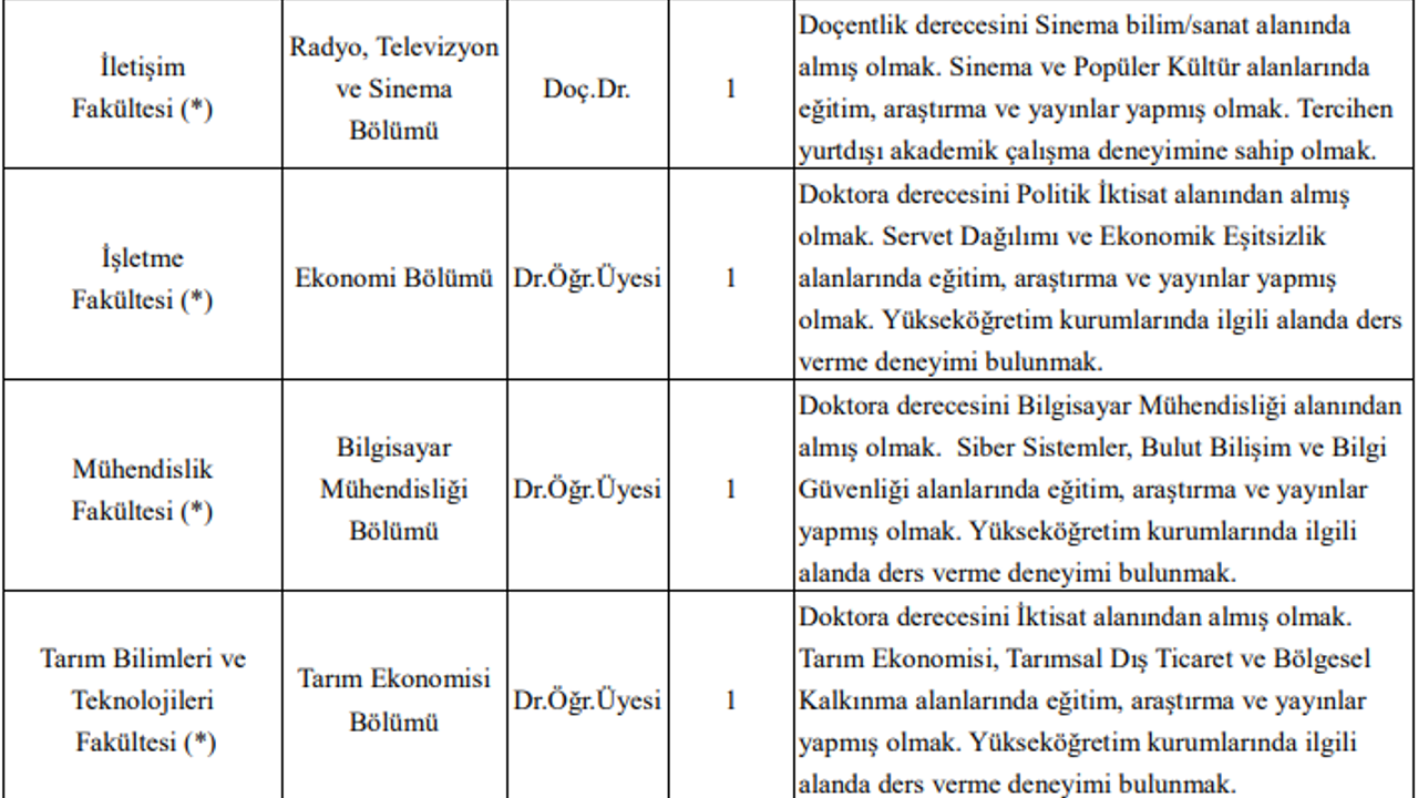 Adayların başvuru sürecinde 657 sayılı Kanun'un 48. maddesindeki genel şartları taşımaları, güncel özgeçmiş, yayın listesi, noter onaylı diploma örnekleri ve adli sicil kaydı gibi belgeleri hazırlamaları zorunlu. Profesör ve doçent kadroları için Rektörlük İnsan Kaynakları Müdürlüğüne, doktor öğretim üyesi kadroları için ise ilgili fakülte dekanlıklarına müracaat edilmesi gerekiyor. Yabancı ülkelerden alınan diplomalar için Üniversitelerarası Kurul (ÜAK) denklik onayı şartı aranıyor.