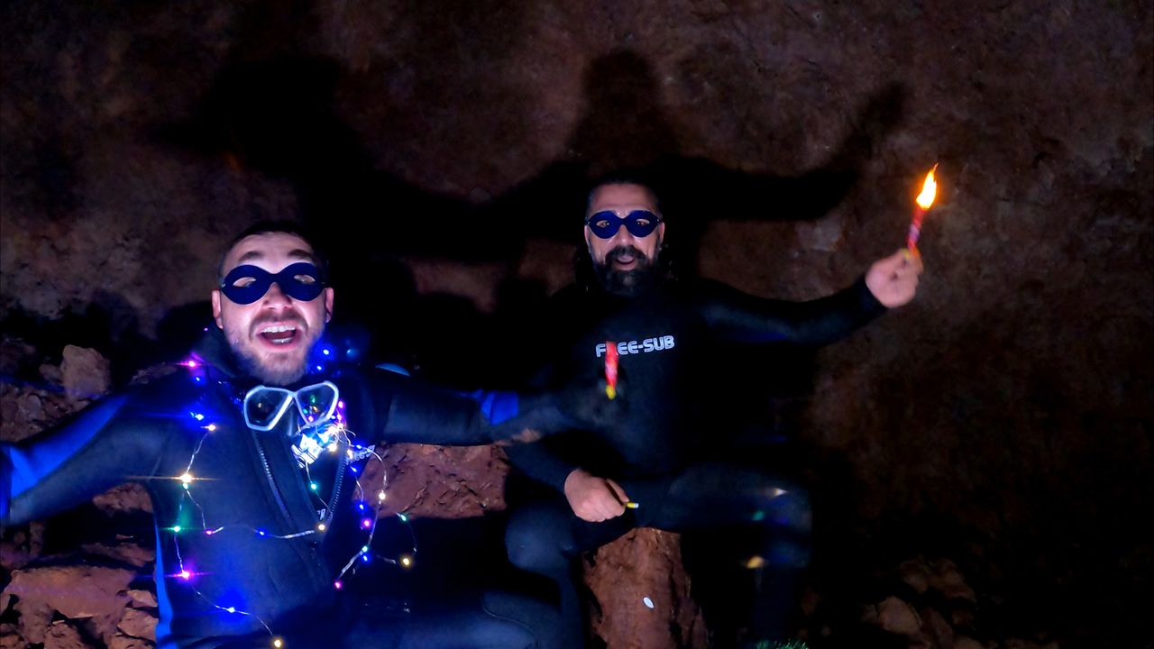 Kılıç, 2025’in tüm dünya için zorlu geçtiğini, su altı mağarasındaki görüntüleriyle insanları gülümsetmek istediklerini söyledi. Konyaaltı falezlerinde suyun altından dalarak çıktıkları hava boşluğu olan mağarada çam ağacı süslediklerini, balonlar patlattıklarını, maytaplar yaktıklarını anlatan Ali Kılıç, 2026’nın tüm dünyaya iyilikler getirmesini dilediklerini kaydetti.