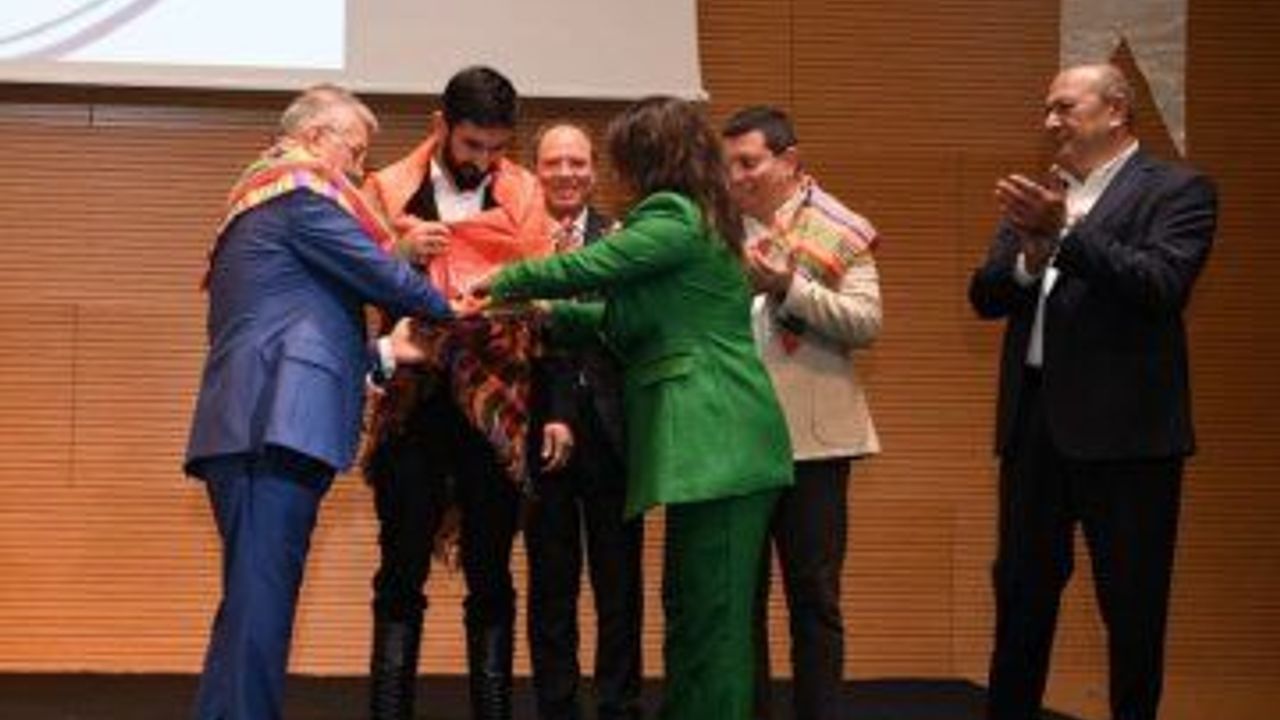 Konuşmasının arından Vali Yazıcı, İl Beyi seçilen Mustafa Acarbulut'a kuşak bağladı.(DHA)