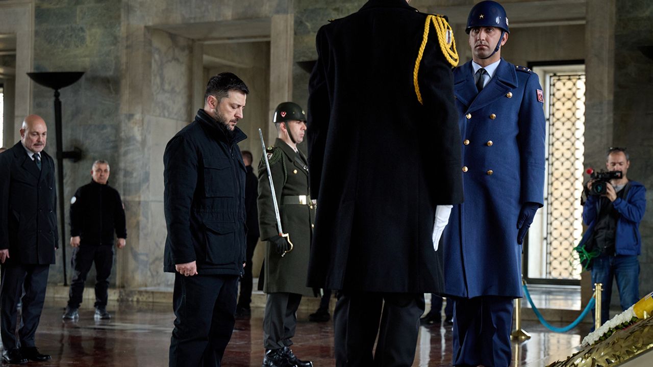 Ukrayna Devlet Başkanı Zelenskiy, Rusya-Ukrayna Savaşı’na ilişkin güncel gelişmeler başta olmak üzere çeşitli konularda temaslarda bulunmak üzere Ankara’ya geldi. Zelenskiy, temasları çerçevesinde Cumhurbaşkanı Recep Tayyip Erdoğan ile ikili görüşmesi öncesinde Anıtkabir’e bir ziyaret gerçekleştirdi. Anıtkabir ziyaretini sosyal medya hesabı üzerinden paylaşan Zelenskiy, Anıtkabir’e Aslanlı Yoldan giriş yaparak beraberindeki heyet ile Atatürk’ün mozolesine çelenk bıraktı. Misak-ı Milli Kulesi’ne beraberindeki heyetle geçen Zelenskiy, burada Anıtkabir Özel defterini imzaladı.